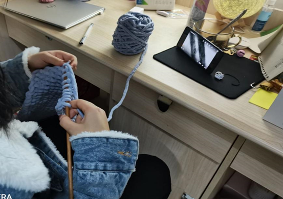 活动进行过程中,对于志愿者们而言,织围巾并不是一件简单的事。有的志愿者在宿舍里独自看教学视频学织围巾,有的志愿者在织围巾的过程中遇到困难半夜向宿管阿姨求助,有的志愿者经过不断尝试熟练后一边在操场散步一边编织围巾,有的志愿者在赶路的地铁上编织围巾。织围巾虽不简单,但在有限的时间内志愿者们圆满地完成了这项任务。他们均表示这次的活动非常有意义,自己乐在其中。