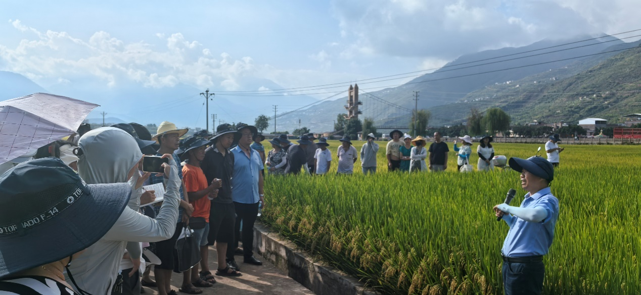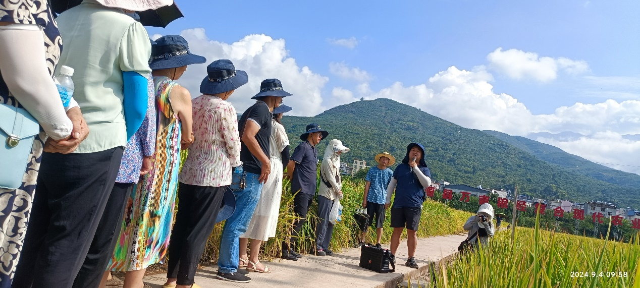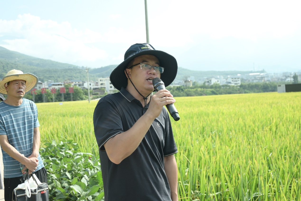 尹俊杰副教授介绍水稻新品种田间长势