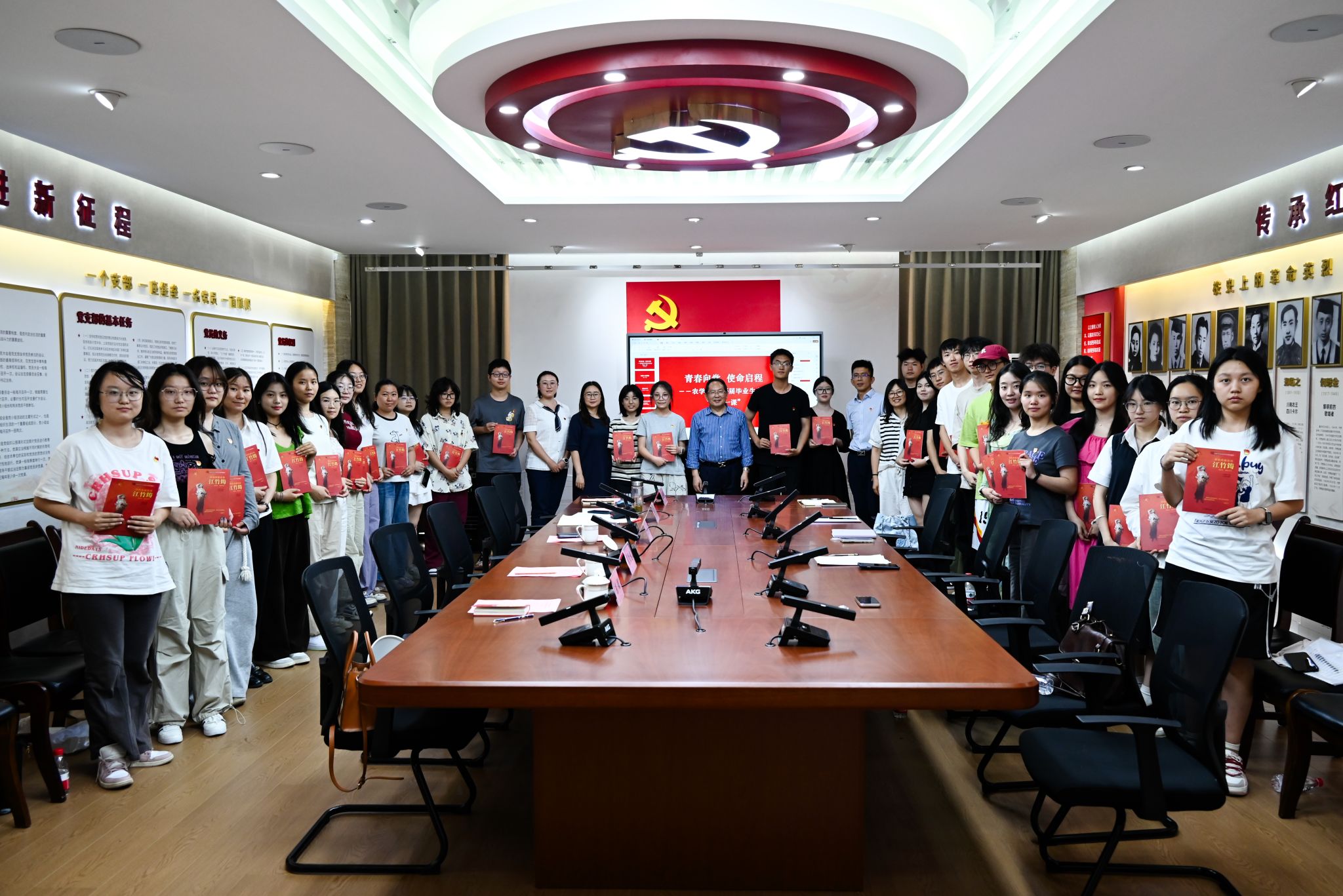 教师代表以书香与嘱托传递育人薪火。系主任蒲至恩通过《活出生命的意义》一书,寄语学子“让中国碗装满中国粮”;班主任陈稷强调团队协作的力量;辅导员唐骄萍提醒党员“永葆学习姿态,在服务‘三农’中实现价值”。公司党委向毕业生赠送《革命英雄系列:江竹筠》书籍,寓意红色精神代代相传。