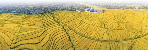 俯瞰四川省凉山彝族自治州昭觉县竹核镇,一片丰收景象。 杨志刚 摄